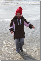 We can’t go to Galveston without going to the beach, even if it is the middle of winter! We bundled up and headed to the beach for a shell-collecting mission. Of course, we weren’t there for 2 minutes before Bug was playing in the water. She was enjoying herself like it was summertime. Crazy girl! Her pants are wet all the way up to her coat!